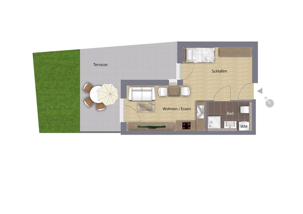 Bitte klicken Sie das Bild an, um den Grundriss mit weiteren Informationen als PDF-Datei zu öffnen.