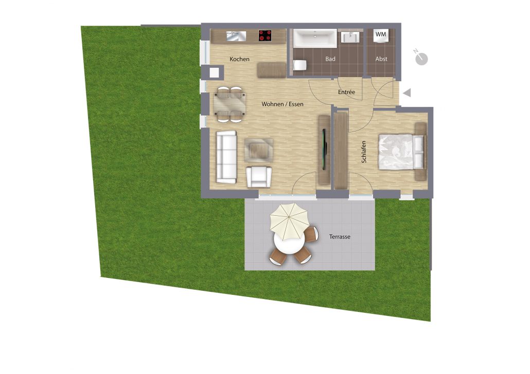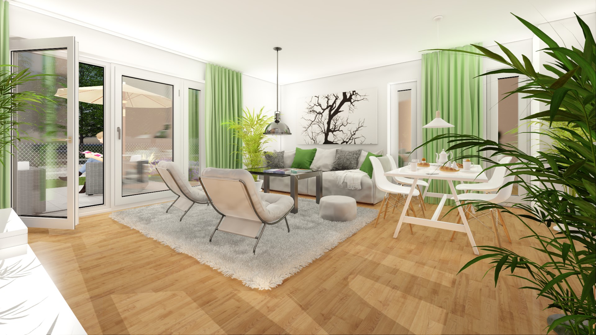 Großzügige Terrassen, Gartenflächen und Balkone bringen entspannende Natur direkt zur Haustür
